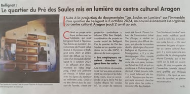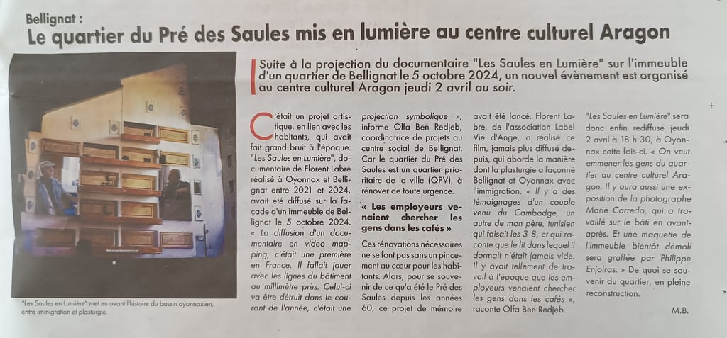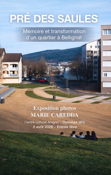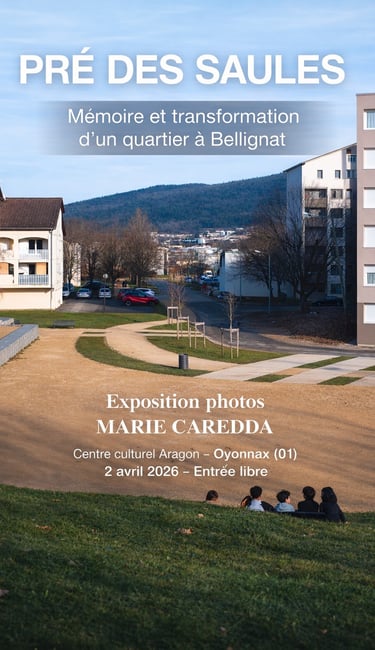 Je vais participer à l'évènement Mémoires d'un territoire le JEUDI 2 AVRIL à 18 h 30 au CENTRE CULTUREL ARAGON à Oyonnax (01) avec une série de mes photos prises au Pré des Saules, un quartier en transformation à Bellignat (01).